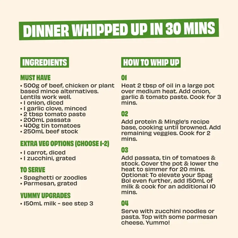 Contains an aromatic herb blend that will take your weeknight Spag Bol to the next level! With this all-natural spice blend and a few quality ingredients you can whip up a super-duper tasty Spag Bol that will hit the spot for everyone!