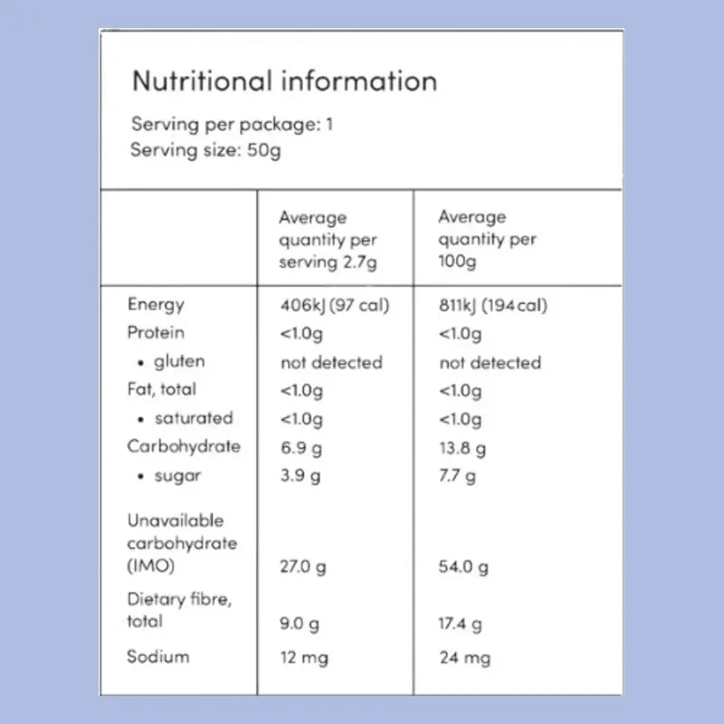 Made with natural stuff, no sugar added, no sugar alcohols (so no tummy drama), and a hit of prebiotic fibre to keep things feelin’ good. Sweet snacking just got way more fun.