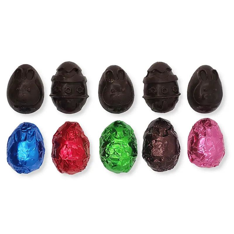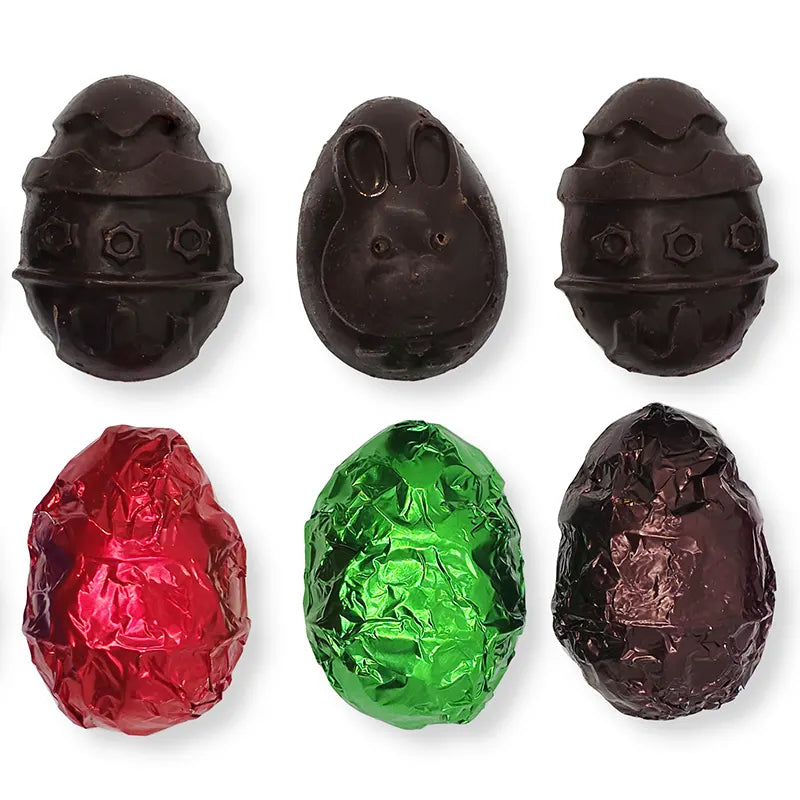 Each bag of Easter Eggs contains 10 x hand made foil-wrapped solid Easter Egg halves, in 5 flavours. So you'll get these amazing taste sensations: